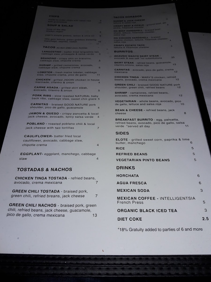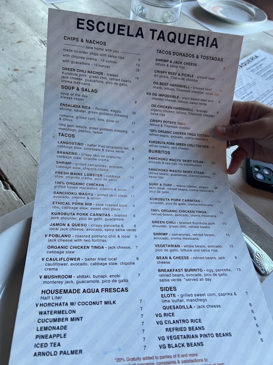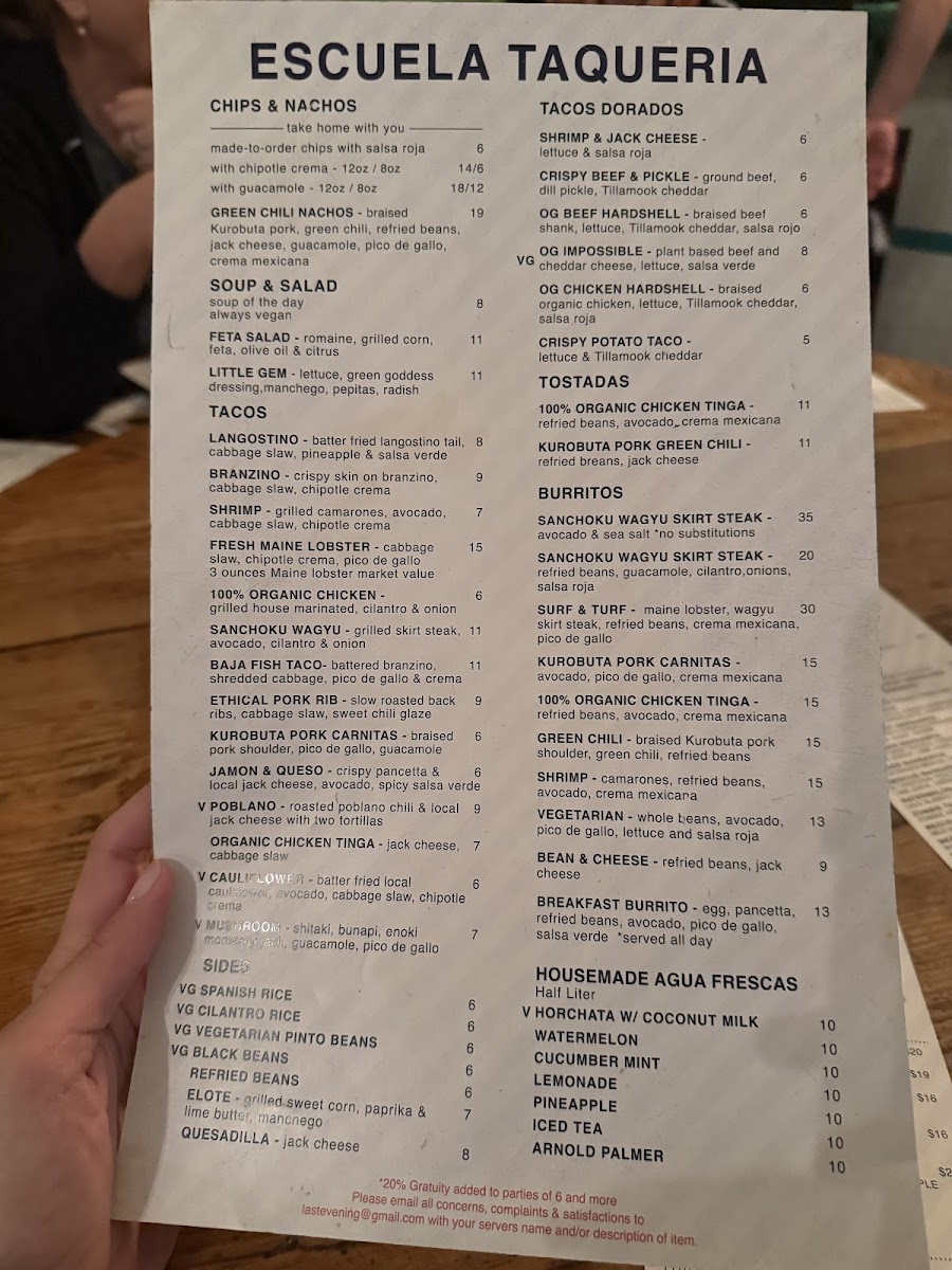 Overall, Escuela Taqueria provides a menu that showcases the richness of Mexican cuisine with both traditional and creative offerings, making it a great destination for anyone looking to enjoy bold and flavorful dishes in Los Angeles.
